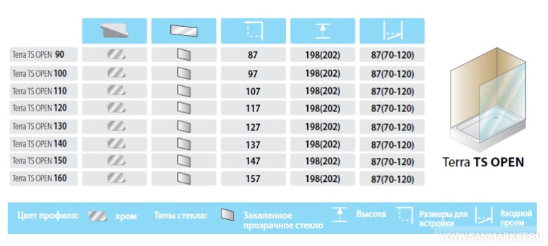 Душевая перегородка Kolpa San Terra TS Open 110 есть в наличии на наших складах. Вы можете купить модель Душевая перегородка Kolpa San Terra TS Open 110 от производителя с бесплатной доставкой при цене заказа от 25000 рублей. В интернет-магазине www.sanmarket.ru всегда низкие цены на Душевые углы бренда . У нас выгодные условия обмена товара и широкие возможности по безналичной оплате.