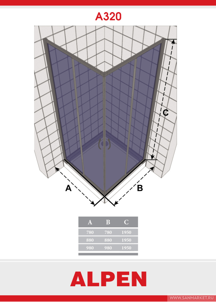 Душевая шторка ALPEN А320-80 есть в наличии на наших складах. Вы можете купить модель Душевая шторка ALPEN А320-80 от производителя с бесплатной доставкой при цене заказа от 25000 рублей. В интернет-магазине www.sanmarket.ru всегда низкие цены на Душевые углы бренда . У нас выгодные условия обмена товара и широкие возможности по безналичной оплате.