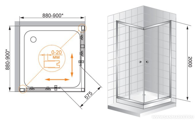 Обратите внимание, данная модель имеет регулируемый профиль,(88-90)х(88-90)х200 см, который позволит идеальноподогнать изделие под размеры в вашей ванной.