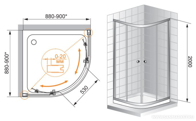 Обратите внимание, данная модель имеет регулируемый профиль,(98-100)х(98-100)х200 см, который позволит идеальноподогнать изделие под размеры в вашей ванной.