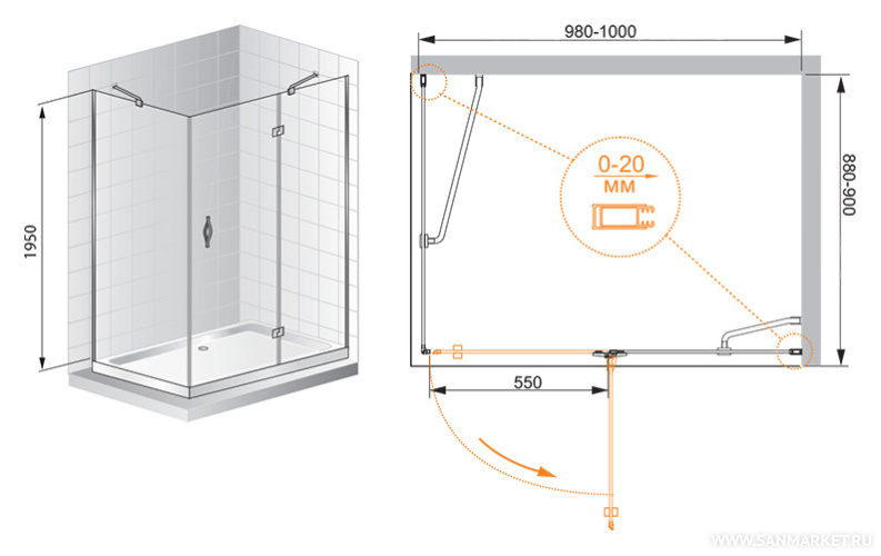 Обратите внимание, данная модель имеет регулируемый профиль,(98-100)x(78-80)x195 см, который позволит идеальноподогнать изделие под размеры в вашей ванной.