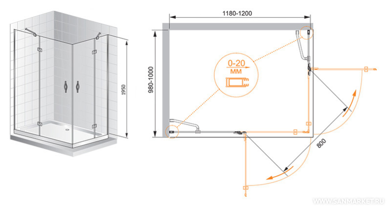 Обратите внимание, данная модель имеет регулируемый профиль,(118-120)x(88-90)x195 см, который позволит идеальноподогнать изделие под размеры в вашей ванной.