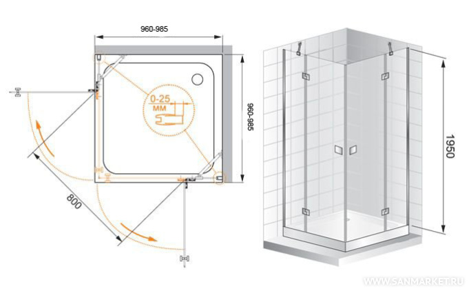 Обратите внимание, данная модель имеет регулируемый профиль,(96-98,5)х(96-98,5)х195 см, который позволит идеальноподогнать изделие под размеры в вашей ванной.