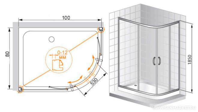 Душевой уголок Cezares Pratico RH2 100x80 C Cr