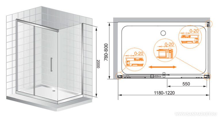 Обратите внимание, данная модель имеет регулируемый профиль,(118-122)x(78-80)x200 см, который позволит идеальноподогнать изделие под размеры в вашей ванной.