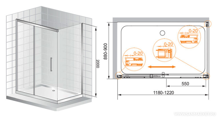 Обратите внимание, данная модель имеет регулируемый профиль,(118-122)x(88-90)x200 см, который позволит идеальноподогнать изделие под размеры в вашей ванной.