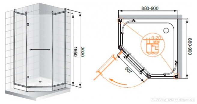 Обратите внимание, данная модель имеет регулируемый профиль,(89-91)x(89-91)x202 см, который позволит идеальноподогнать изделие под размеры в вашей ванной.