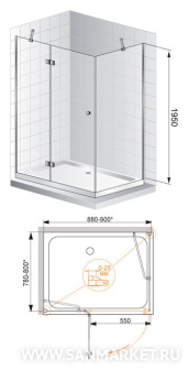 Обратите внимание, данная модель имеет регулируемый профиль,(118-120)x(78-80)x195 см, который позволит идеальноподогнать изделие под размеры в вашей ванной.