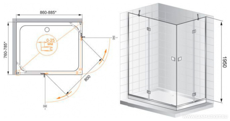Обратите внимание, данная модель имеет регулируемый профиль,(118-120)x(98-100)x195 см, который позволит идеальноподогнать изделие под размеры в вашей ванной.