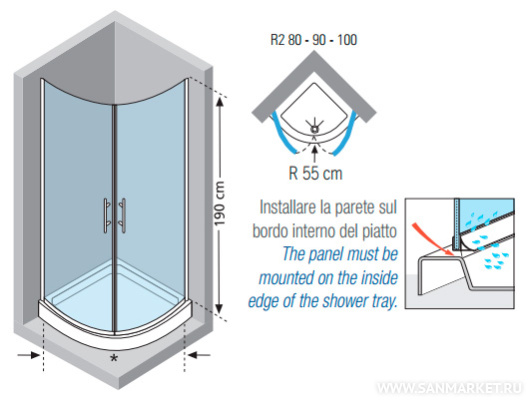 на поддон, пристенный в угол, напольный