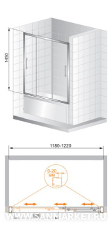 Обратите внимание, данная модель имеет регулируемый профиль,(178-182)х145 см, который позволит идеальноподогнать изделие под размеры в вашей ванной.