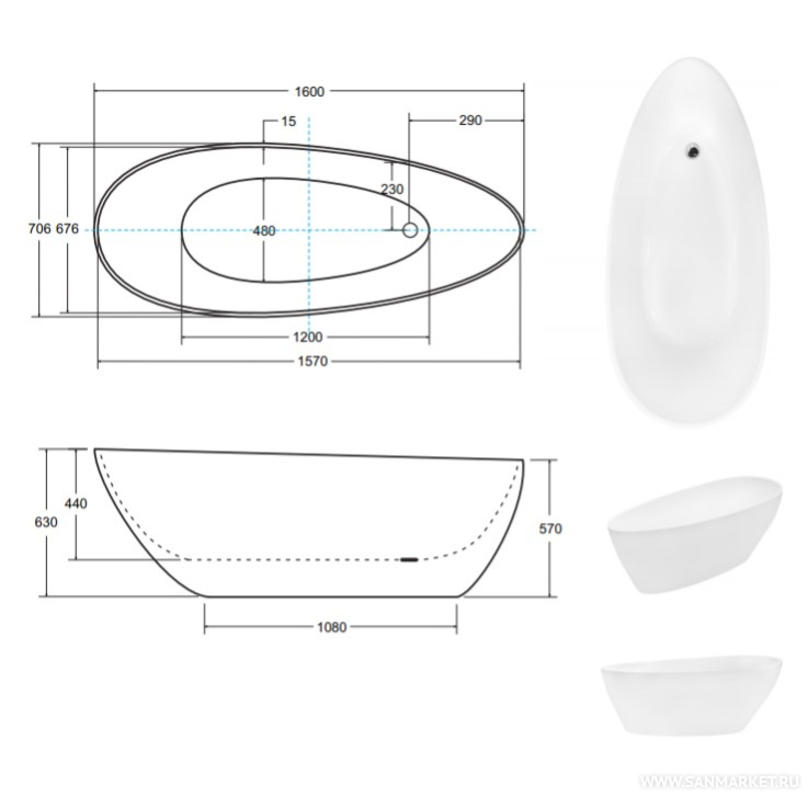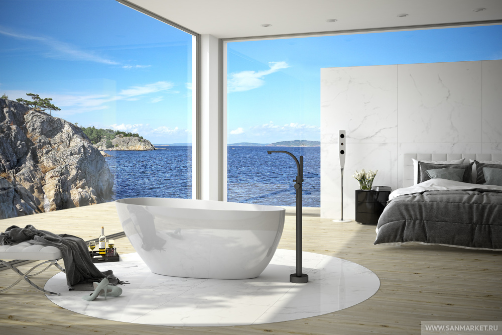 Ванна из литого мрамора BESCO GOYA 160. Благодаря тонким бортам ванны из каменной массы, внутренний размер и объем достаточной большой, поэтому лежать в ней удобно.