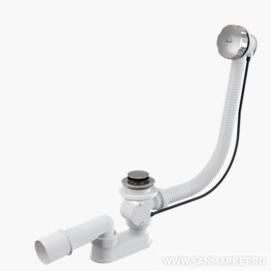 AlcaPlast A55K-100 - автоматический сифон для установки в ванну и выпуска воды в канализационный сток. Используется для ванн стандартных размеров с выпускным отверстием диаметром 52 мм. Сифон прост при монтаже и в уходе, чему способствуют качественные современный материалы, которые используются при производстве. Данная модель имеет патрубок для перелива длиной 1000 мм. AlcaPlast A55K-100 снабжён системой закрытия сливного клапана с помощью троса Боудена.
