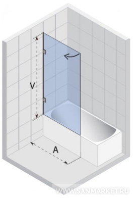Универсальная шторка для прямоугольных ванн Riho. Исполнение - стекло (6 мм).