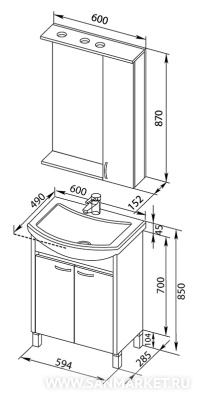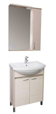 Мебельный гарнитур для ванной комнаты Донна включает тот необходимый минимум, без которого трудно обойтись в повседневном быту. Напольная тумба с раковиной-столешницей и двумя отделениями с распашными дверцами позволит с удобством разместить необходимые бытовые средства и банные принадлежности. Навесное зеркало оборудовано встроенной подсветкой, а также выключателем и розеткой для бытовых приборов. Боковой шкафчик с компактными полками предназначен для мелочей, которые всегда должны быть под рукой.