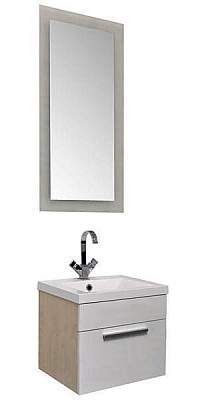 Компактный набор мебели Нота экономит пространство и позволяет в небольшой ванной комнате создать стильный, современный интерьер с минимальными затратами. Неглубокая навесная тумба с ящиком для хранения — оптимальный вариант для миниатюрной раковины, вертикальное зеркало той же ширины, что и тумба, уравновешивает композицию, добавляет в интерьер света, визуально увеличивает пространство. Нейтральные тона гарнитура позволят сочетать его с интерьером любой цветовой гаммы.