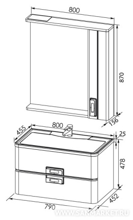Стильный комплект мебели для ванной комнаты подойдет тем, кто предпочитает строгость и минимализм в интерьере. Четкие, правильные формы и лаконичный цвет подчеркивают причудливость оригинальных металлических ручек, а отсутствие ножек тумбы облегчает уборку и создает устойчивое впечатление, что мебель парит в воздухе. Удобная полка рядом с зеркалом предназначена для мелочей, которые всегда должны быть под рукой, а в большой вместительный шкаф-пенал, который приобретается отдельно, можно убрать крупные вещи, например, полотенца. Выкатные ящики под раковиной снабжены системой доводчиков для более плавного хода.