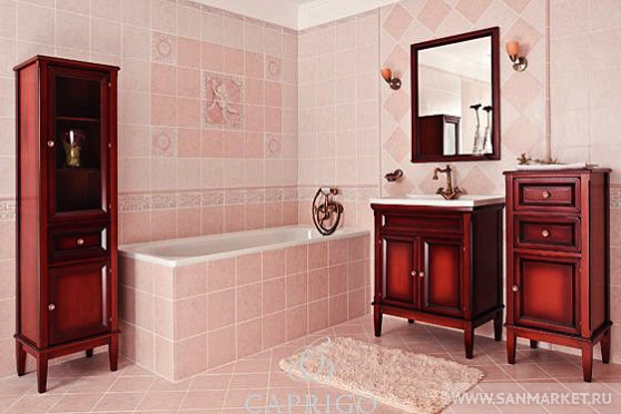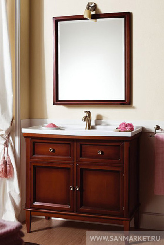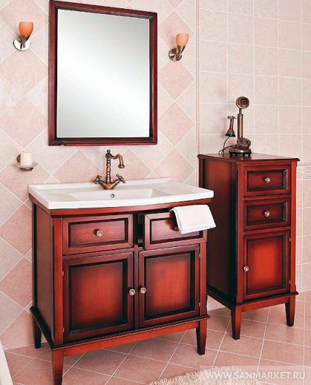 Тонировка - "орех". Для придания эффекта старины используется завальцовка углов и многослойное патинирование. Цвет патины - орех, "плесень". Затемнение углов, ножек. Финишный блеск "шелковисто глянцевый". Коллекция мебели для ванной комнаты Джардин - это очень удачная попытка воссоздать стиль «Прованс» в любом доме. Для этого стиля присущи деревенские черты, натуральные материалы и светлые пастельные тона. Для придания подлинности ощущений, мебель стиля «Прованс» искусственно состаривают: наносят потертости, сколы, древоточины, проеденные жучком.