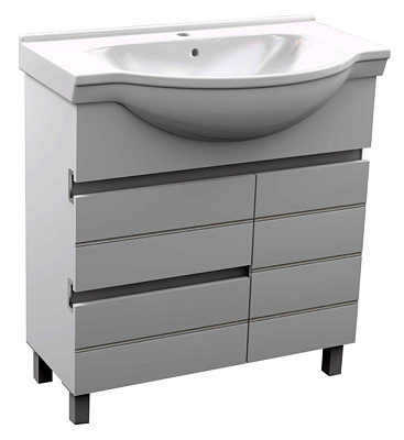 Стильная и вместительная тумба с раковиной Доминика 80 — станет яркой ноткой в дизайне вашей ванной комнаты. Как и все модели этой серии, тумба выполнена в стиле модерн. Белый фасад из МДФ, разбит на четкий ритм горизонтальными элементами. Функциональная часть напольной тумбы представлена отделением с распашной дверцей и двумя выдвижными ящиками. Компактный размеры тумбы позволяют разместить данную модель в малогабаритной ванной комнате.