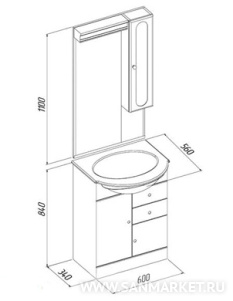 Элегантное зеркало укомплектовано закрытым шкафчиком с распашной дверцей, который сохранит ваши банные принадлежности вдали от пыли и влаги. В карниз конструкции встроена подсветка, которая управляется расположенным тут же выключателем. Компактные размеры модели Марсель 60 позволят разместить ее в ванной комнате даже очень небольших размеров.