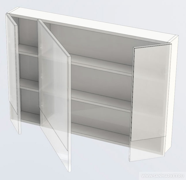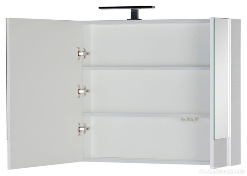 Широкое зеркало с вместительным шкафчиком не только позволит разместить все необходимое в ;удобном доступе, но и обеспечит комфорт при ежедневных утренних и вечерних гигиенических процедурах. За зеркальным полотном предусмотрены аккуратные полки, которые подойдут для размещения ваших гигиенических средств, косметики и лекарств.