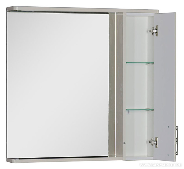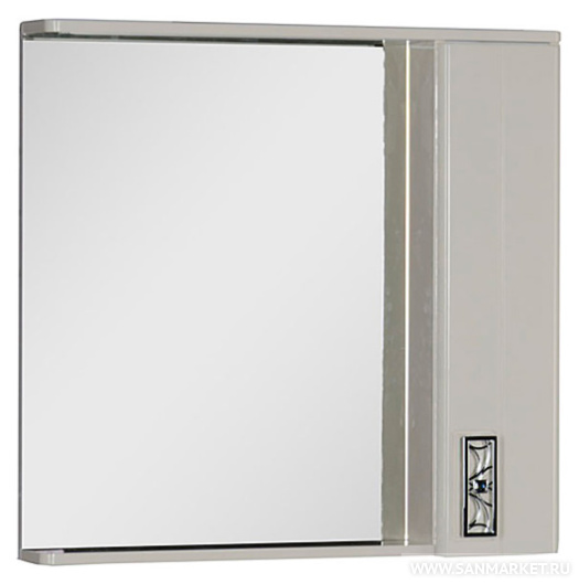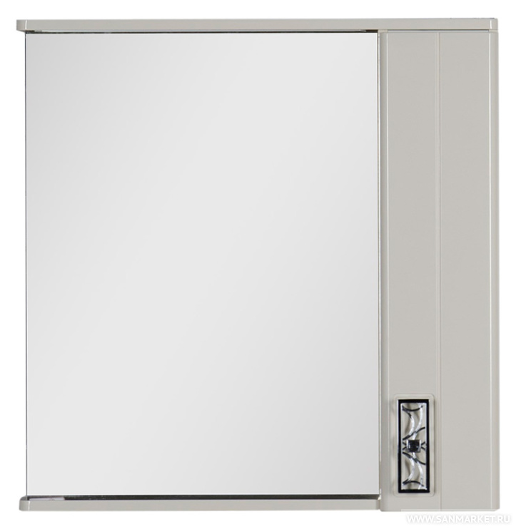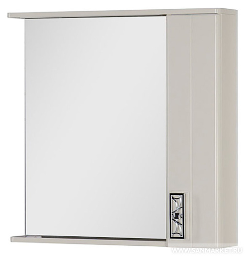 Стильное зеркало станет эффектным дополнением к интерьеру ванной комнаты. Нейтральный цвет позволит сочетать модель с отделкой любых оттенков, а продуманная функциональная часть придется по вкусу тем, кто ценит практичные и удобные вещи. Открытая полка позволит разместить часто используемые средства под рукой, шкафчик с распашной дверцей сохранит ваши банные принадлежности от пыли и влаги, карниз служит держателем для встроенных светильников.