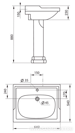 с пьедесталом, подвесная