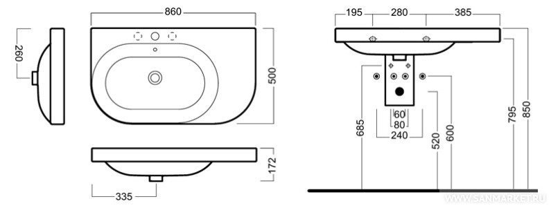 с полупьедесталом, подвесная, накладная