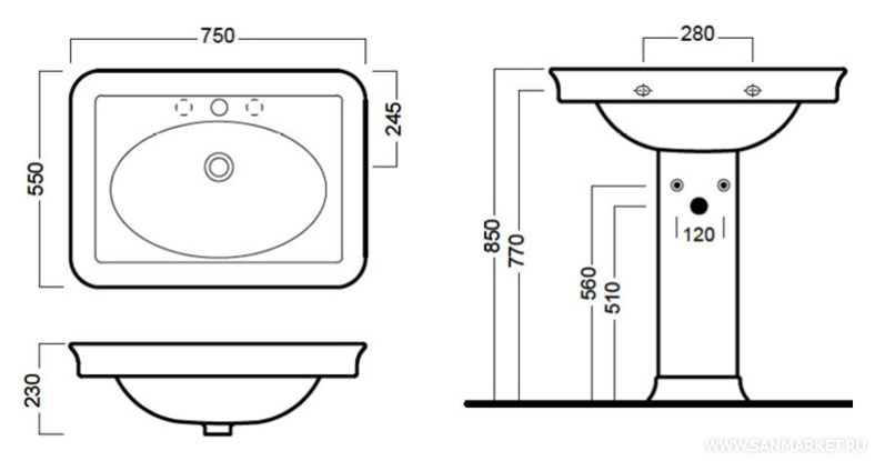 с пьедесталом, подвесная