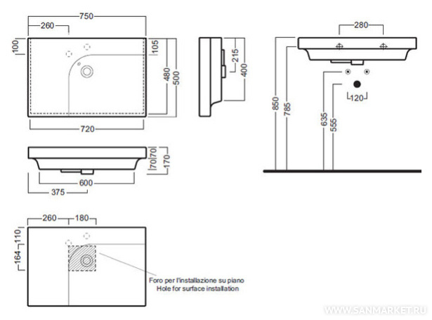 Раковина Hatria Grandangolo DX (75 см)