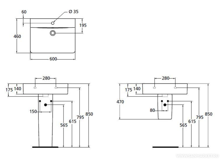 с полупьедесталом, с пьедесталом, подвесная