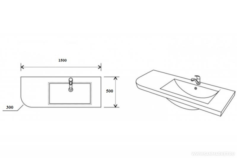 раковина встриваемая, накладная левая