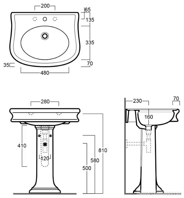с пьедесталом, подвесная