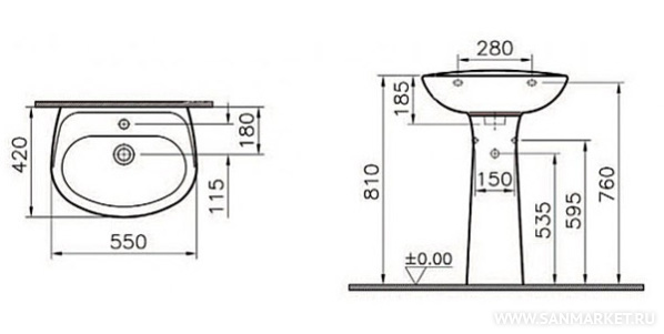 Раковина Normus - изделие высокого качества и продуманным дизайном. Изготовлена из сантехнического фарфора, что делает сантехнику прочной и устойчивой к загрязнениям и повреждениям. На протяжении всего срока, благодаря специальному покрытию, она сохранит свой привлекательный вид. Модель компактна (ширина – 42 см, длина – 55 см) , что без трудностей может устанавливаться в маленьком помещении. Имеетотверстие для смесителя, слив-перелив, сливное отверстие. Можно установить с пьедесталом, крепление к стене.
