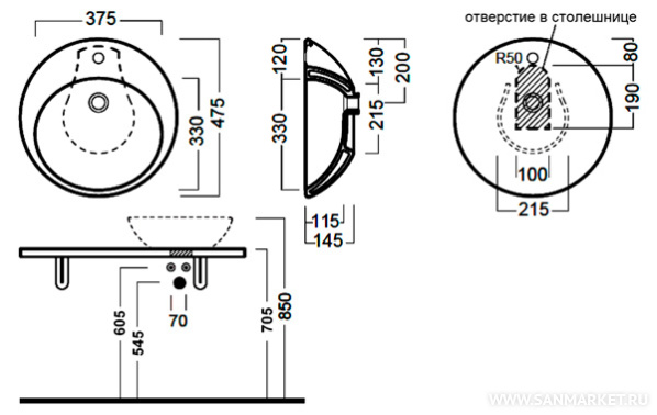 рукомойник, накладная