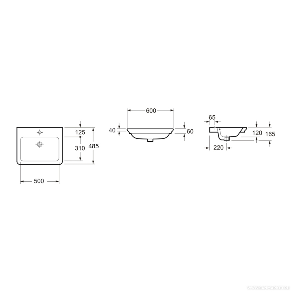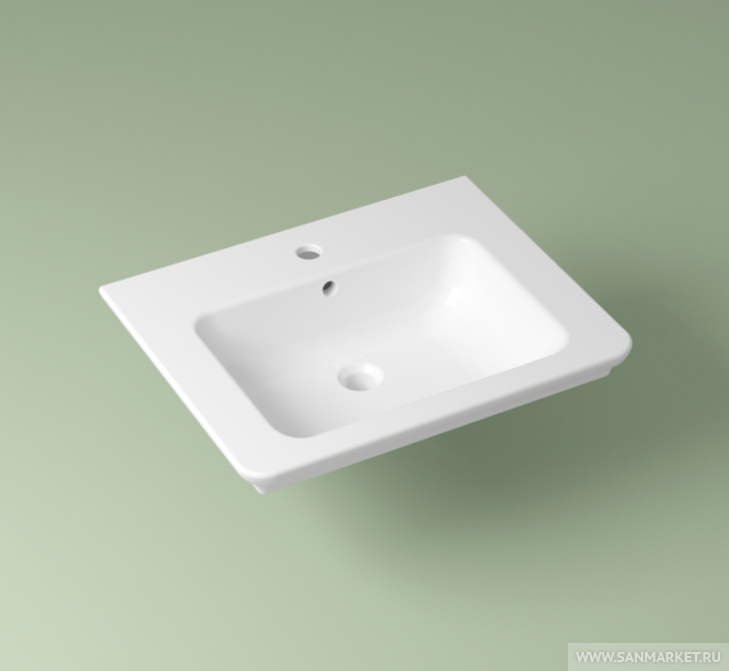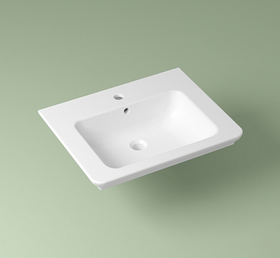Нижняя часть умывальника находится под столешницей, а видимой остается только внутренняя часть раковины, смеситель и донный клапан (не входят в базовую комплектацию). Умывальник отлично сочетается с различными материалами от дерева до мрамора, а также со смесителем стандартной высоты около 100 мм.