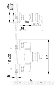 душевая лейка, душевой шланг, настенный держатель, эксцентрики