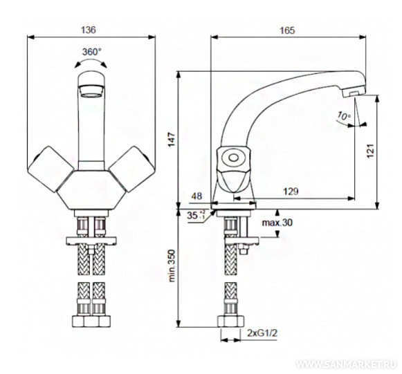 аэратор, крепления, гибкая подводка