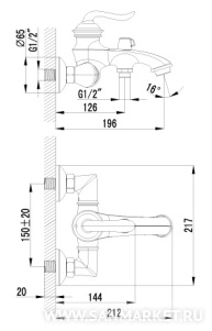 для ванны с душем, набор: смеситель и душевой гарнитур
