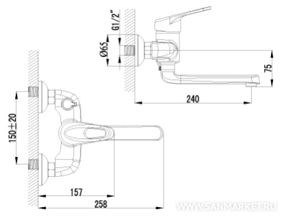 для ванны с душем, набор: смеситель и душевой гарнитур