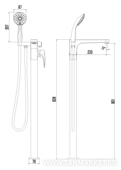 для ванны с душем, набор: смеситель и душевой гарнитур