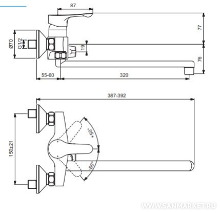 для ванны с душем, набор: смеситель и душевой гарнитур