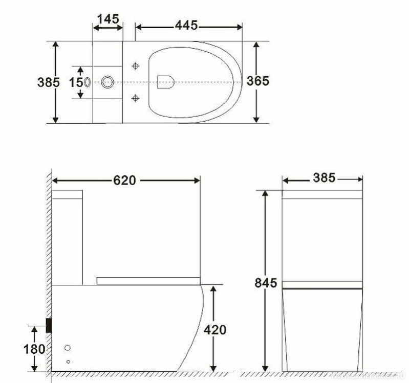 снизу бачка