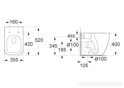 приставной (бачок в стене)