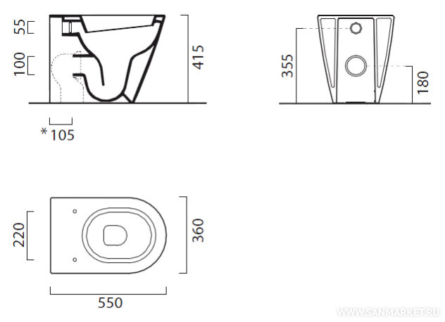 приставной (бачок в стене)