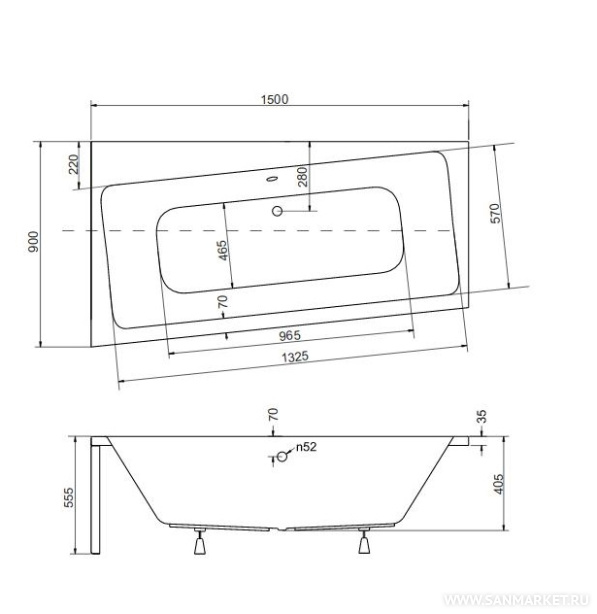 Ванна из 100% акрилового листа с чашей под углом - креативно и очень практично. Асимметрия дает большие возможности, а акриловая ванна Infinity 150 L - отличный выбор в условиях сложной планировки. Ванна надежна и долговечна.