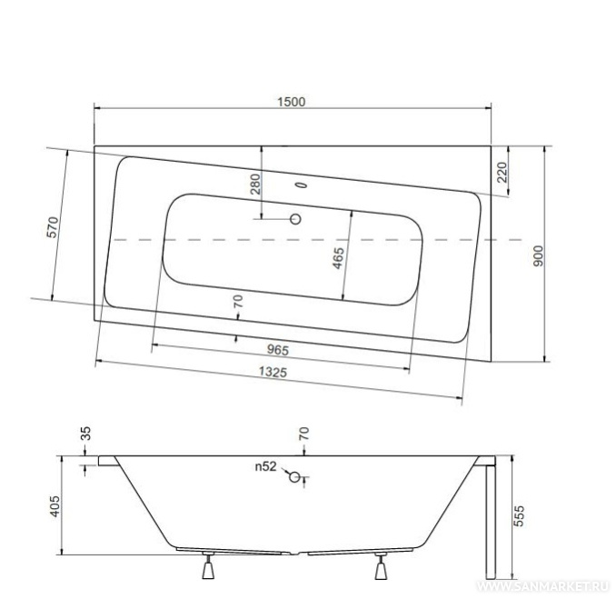 Ванна из 100% акрилового листа с чашей под углом - креативно и очень практично. Асимметрия дает большие возможности, а акриловая ванна Infinity 150 P - отличный выбор в условиях сложной планировки. Ванна надежна и долговечна.