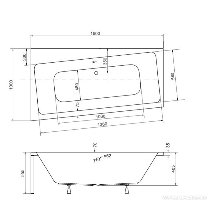 Ванна из 100% акрилового листа с чашей под углом - креативно и очень практично. Асимметрия дает большие возможности, а акриловая ванна Infinity 160 L - отличный выбор в условиях сложной планировки. Ванна надежна и долговечна.