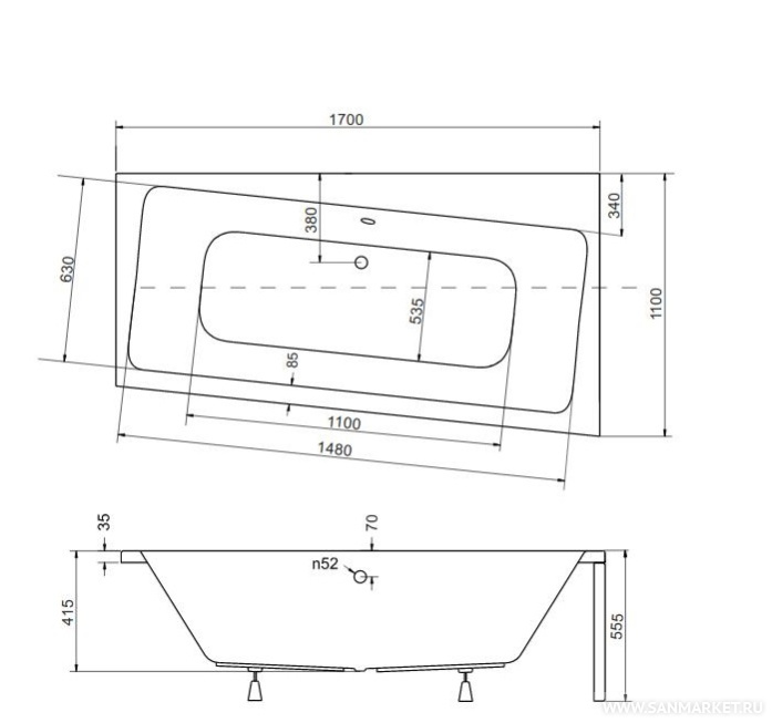 Ванна из 100% акрилового листа с чашей под углом - креативно и очень практично. Асимметрия дает большие возможности, а акриловая ванна Infinity 170 P - отличный выбор в условиях сложной планировки. Ванна надежна и долговечна.