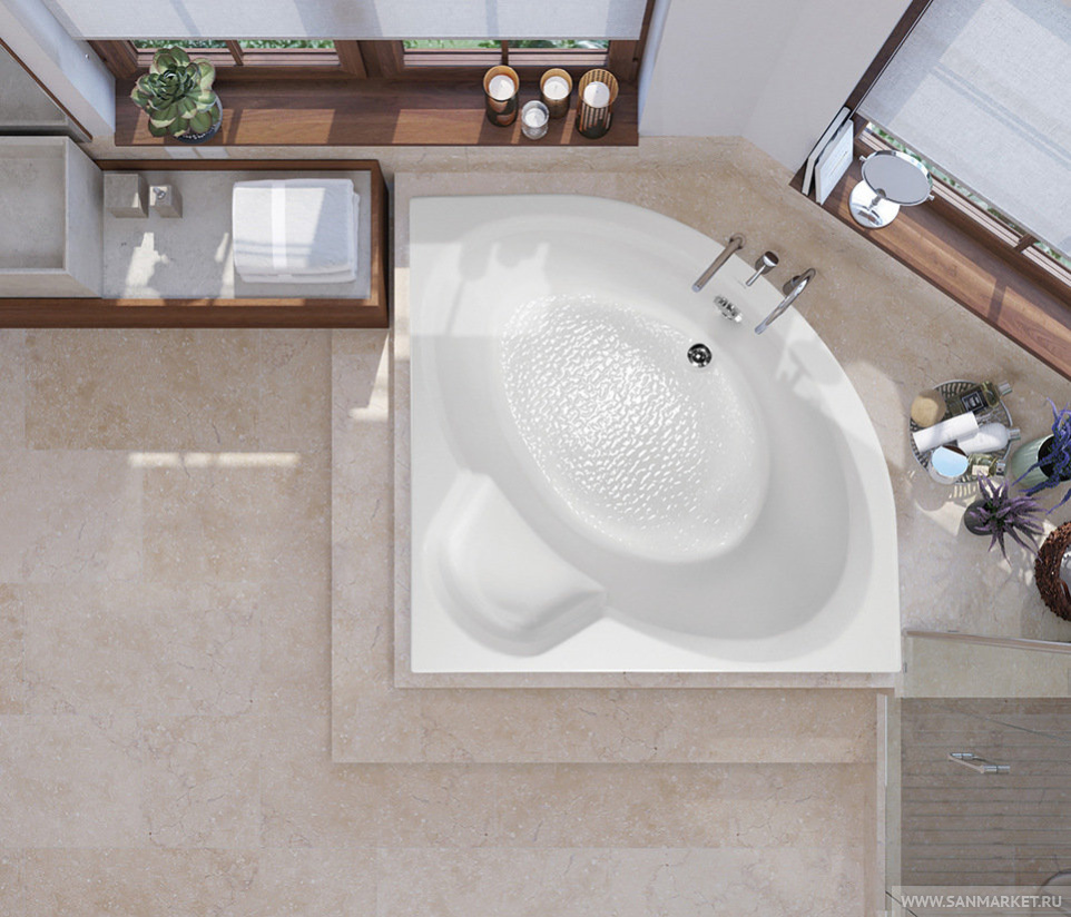 Vagnerplast Catalina 146х146 – акриловая ванна для пристенной угловой установки. Асимметричная форма делает модель универсальной – она вписывается и в левый, и в правый угол. В угловой части в конструкции предусмотрена специальная выемка, которая может служить удобным сиденьем или дополнительной поверхностью для хранения ванных принадлежностей.